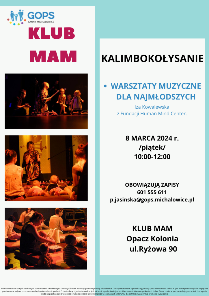 Prowadzi również warsztaty dla najmłodszych (grupy wiekowe od 1,5 roku – 5 lat oraz 6 – 8 lat) oraz tworzy autorskie programy muzyczne dla dzieci i młodzieży.