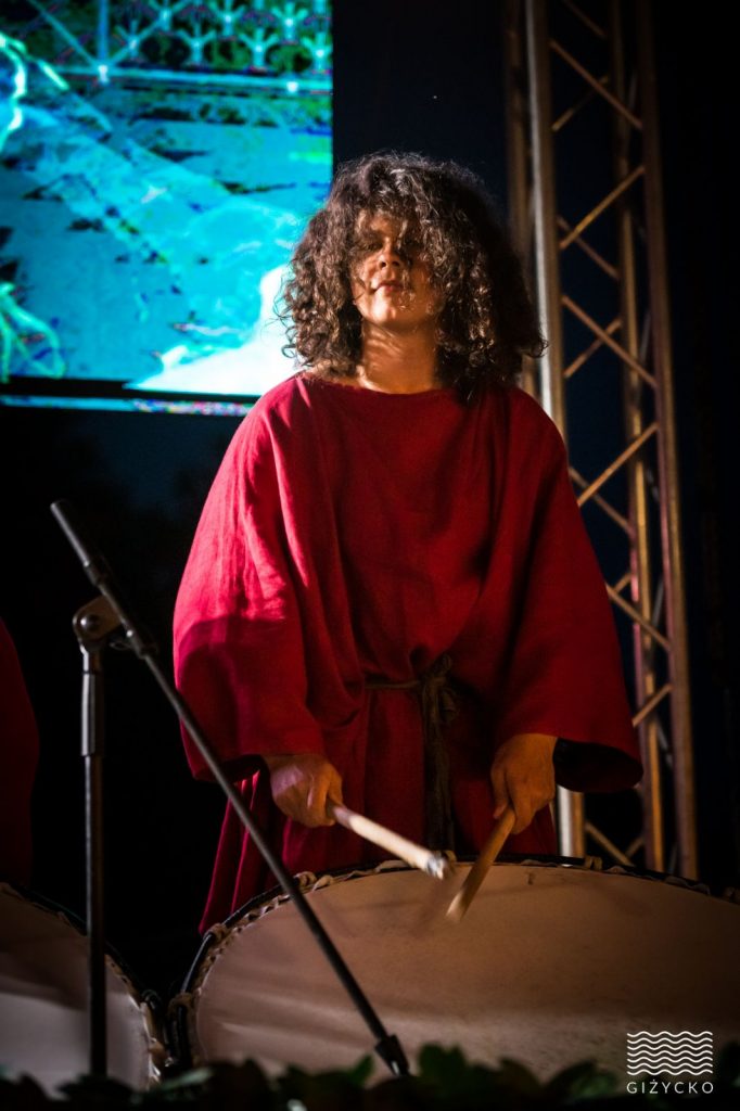 Dźwięki rytualnych basowych tonów, które wydają takie bębny, słuchane są przez publiczność całym ciałem. Poczucie siły sprzed setek pokoleń, pierwotne odczuwanie dźwięku spontanicznym tańcom i zabawie, a z chwili na chwilę cali stajemy się częścią muzyki.